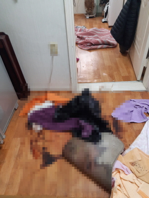 혈액, 부패액으로 오염되어 있는 침구류 및 가재도구를 모두 제거하였습니다.