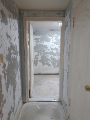 시신 부패 악취가 배어 있는 집안의 벽지를 모두 제거하였습니다.