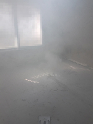 혈액제거제를 살포하여 바닥에 묻어 있는 오염물을 모두 닦아내었습니다.