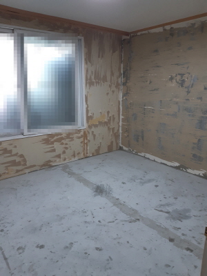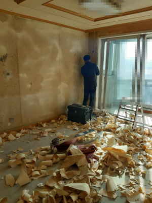 시신 부패 악취가 배어 있는 집안의 벽지를 모두 제거하였습니다.