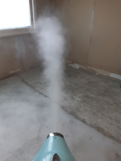오염 상태가 심각한 관계로 건물주(집주인)분께 연락하여 콘크리트 바닥을 철거하는 설비공사가 필요하다는 것을 알려드렸으며 이에 건물 입구에 공사안내문을 부착한 뒤 현장에서 철수하였습니다.