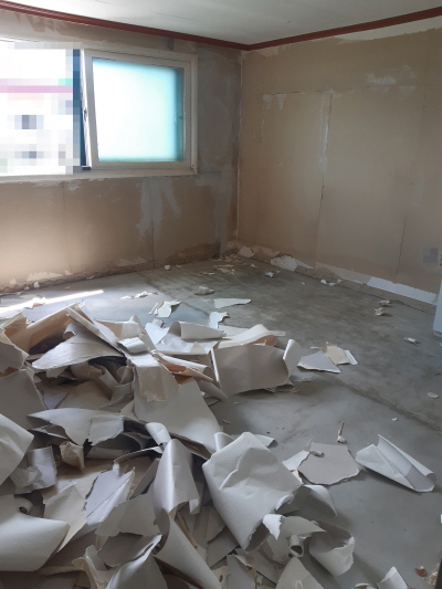 시신 부패 악취가 배어 있는 집안의 벽지를 모두 제거하였습니다.