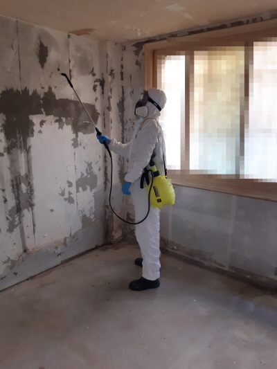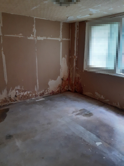 다음날, 시신 부패 악취가 배어 있는 집안의 벽지를 모두 제거하였으며 오염된 장판 또한 모두 걷어내었습니다.