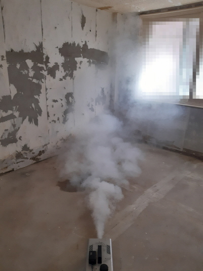 집안 전체적으로 살균세정제, 살균성소취제, 연막항균제를 살포하여 살균, 소독 및 항균탈취, 소취 작업을 모두 완료하였습니다.
