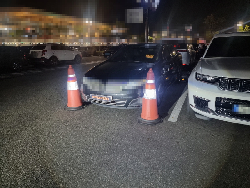 현장에 도착하자 해당 차량이 라바콘에 둘러쳐져 있는 것을 확인할 수 있었으며 곧바로 차량 전체 점검을 시작하였습니다.