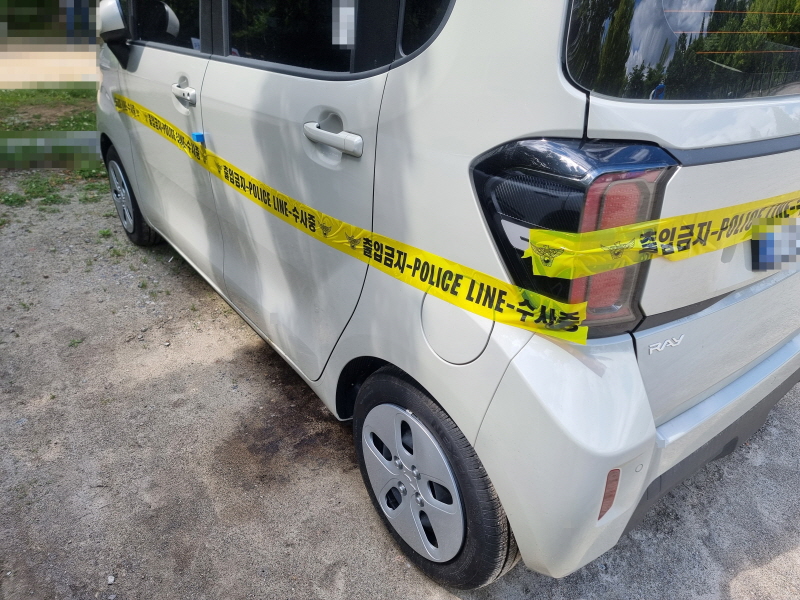 차량은 어느 한 공원 주차장에 주차되어 있었으며 주변으로는 폴리스라인이 붙어 있는 상황이었습니다.