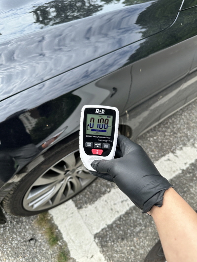 해당 차량의 문제해결을 위하여 보험이력 조회와 함께 사고유무를 판단하기 위한 도막 측정을 실시하였습니다.