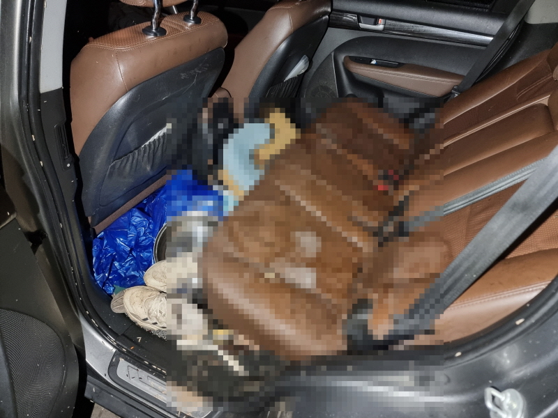 고인은 뒷좌석에서 사망하였으며 다량의 오염물이 시트와 바닥 카펫 내부로 흘러내린 상황이었습니다.