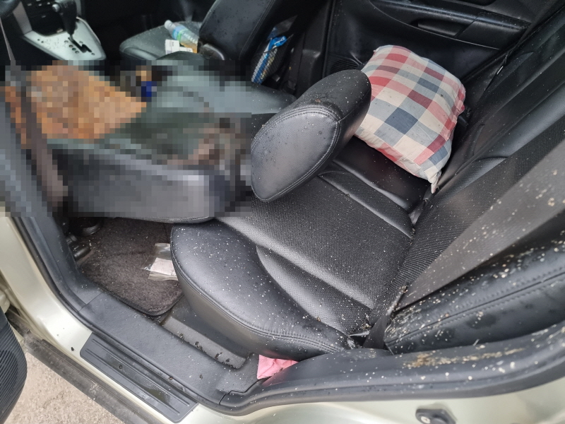 또한, 날씨에 따른 파리 유충이 발생한 상황이었으며 조수석 바닥에는 고인의 사망 원인으로 추정되는 번개탄 잔해가 널브러져 있었습니다.
