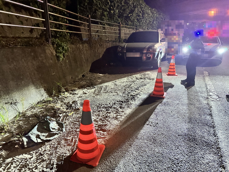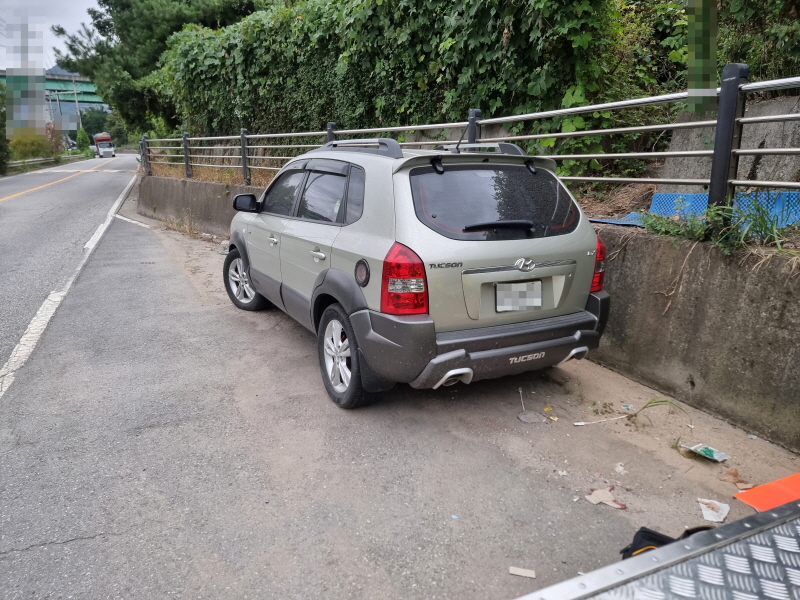 차량은 도로변 합류구간 끝부분에 방치되어 있었으며 곧바로 차량 내부를 확인하였습니다.