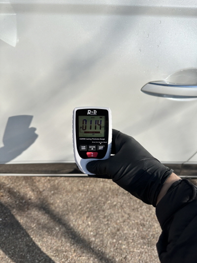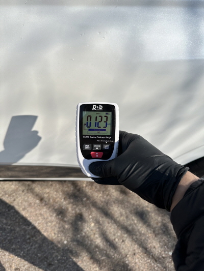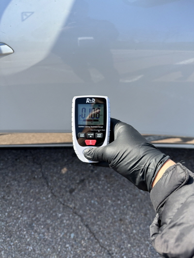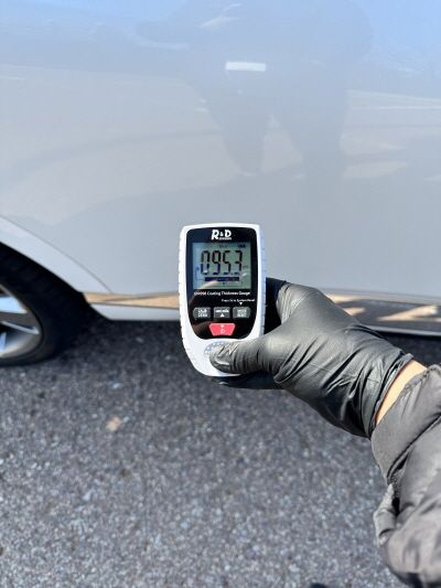 당사의 제안에 의뢰인분께서 동의하심에 따라 해당 차량의 잔존가치를 파악하기 위하여 보험 이력 조회와 함께 도막 측정을 통한 사고 유무를 확인하였습니다.