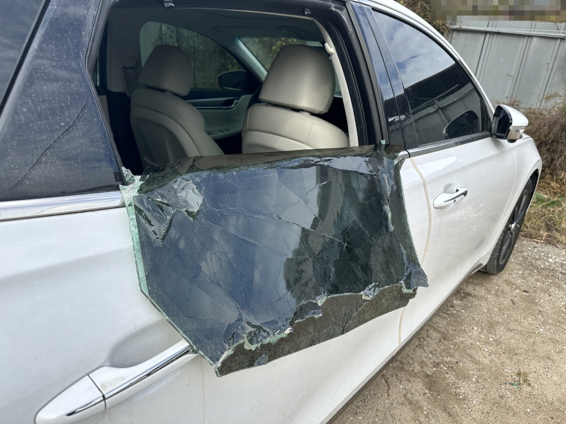 먼저 고인의 수습을 위한 뒷좌석 도어의 유리 파손 흔적이 남아 있었습니다.