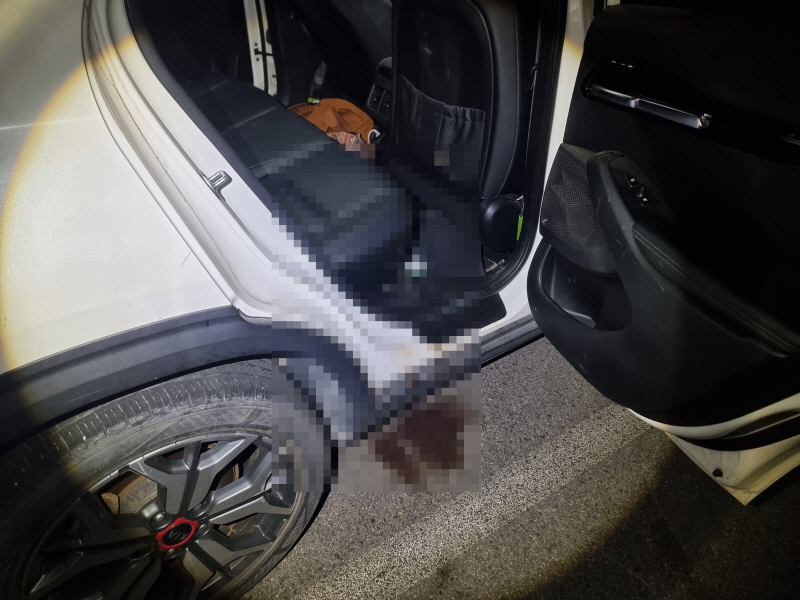 고인은 뒷좌석에서 사망하였으며 시트와 차체에는 혈흔이 묻어 있고 바닥으로는 혈액이 흘러내린 흔적이 남아 있었습니다.