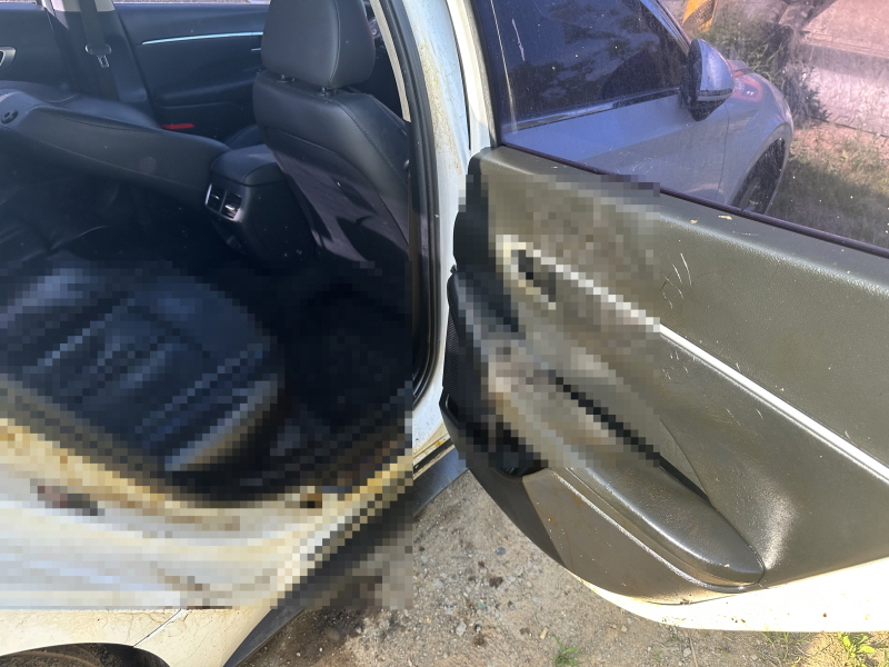 차량 옆으로 다가가자 시체부패악취가 진동하는 것을 확인할 수 있었으며 일부의 변사체 오염물은 차체 밖 바닥으로 흘러내린 상황이었습니다.