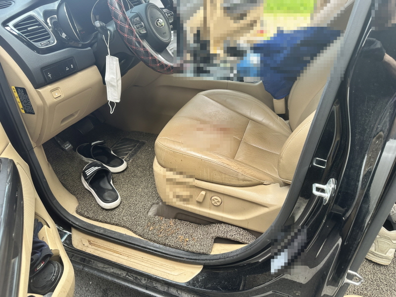 운전석 시트에는 소량의 혈흔이 묻어 있었으며 주변 바닥으로는 오염물이 일부 흘러내린 상태였습니다.