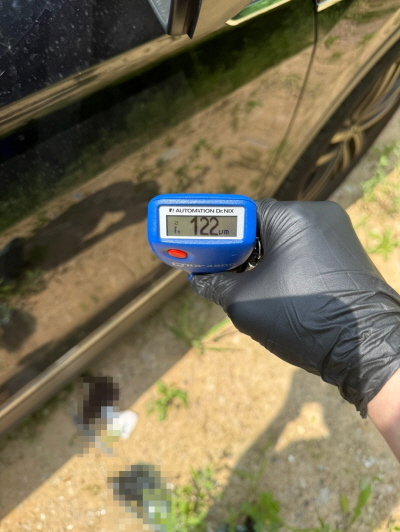 이어서 차량 외관의 도막을 측정하여 사고유무를 파악하였으며 보험조회에 따른 수리내역도 함께 확인하였습니다.