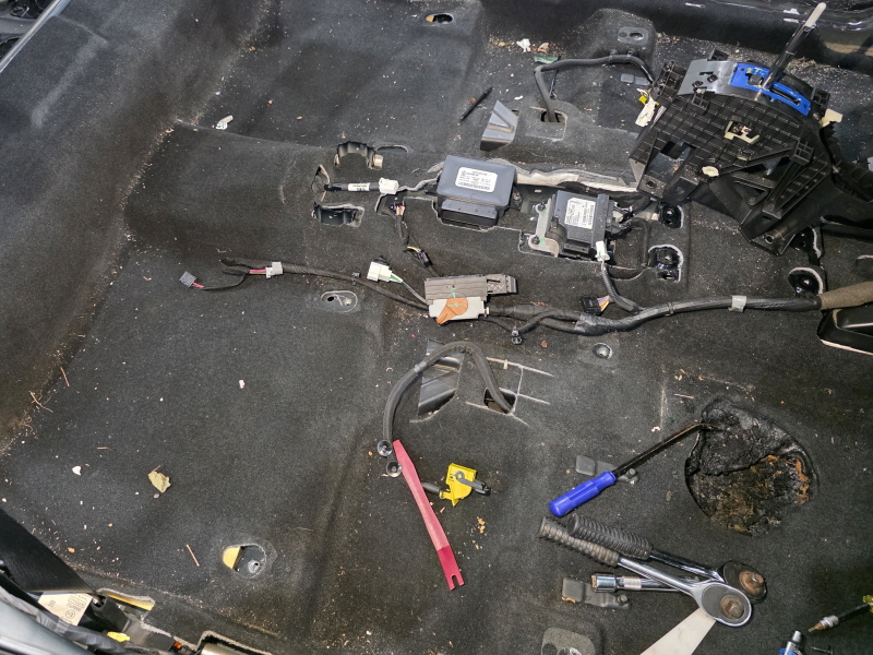 이후 시트, 센터콘솔 등의 부품을 모두 탈거한 뒤 카페트를 제거하였습니다.