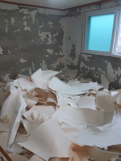 - 시체부패악취가 배어있는 집안의 벽지를 모두 제거하였습니다.